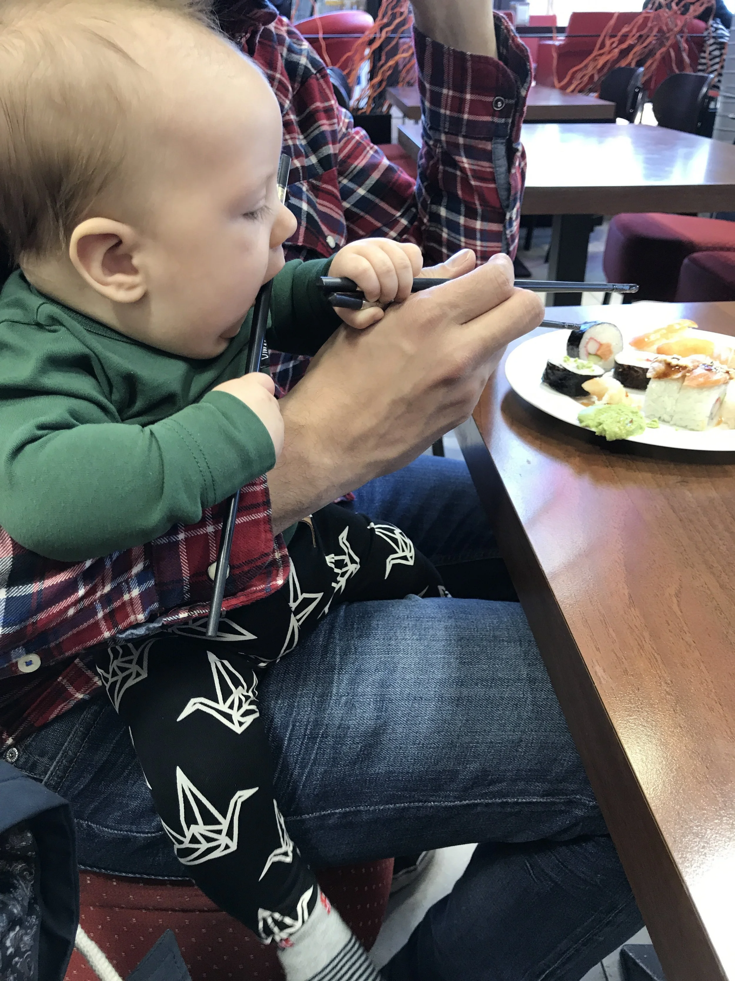 Filipillä on siis osa syömiseen tarvittavista taidoista. Hän osaa tarttua esineisiin ja viedä niitä suuhunsa. Häntä kiinnostaa kovasti se, mitä me ruokapöydässä teemme. Toisaalta häntä kiinnostaa ihan kaikki mitä me teemme.