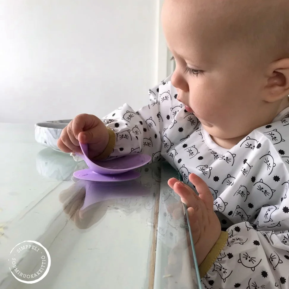 Lähdetäänkö hifistelemään? Mennään! Nimittäin jos haluaa säästää reissun päällä aikaa, annoksen voi myös tehdä kokonaan valmiiksi jo kotona! Ja kun valitsee lautasen, joka pysyy pöydässä kiinni, jää sitä aikaa myös ehkä itsellekin syödä, kun 1) lautanen ei ole lattialla 2) ei tarvitse luututa sitä lattiaa 3) tehdä lapselle uutta annosta. Minä testailin Iriksellä tätä Bumkinsin lautasta, joka kestää ns. hosumaosumat pohjassa olevan imukupin ansiosta. Kyllähän lapsi tämänKIN saa halutessaan pöydästä revittyä irti, mutta vahingossa tämä ei lattialle heilahda. Tykkäsin, ja tykkäs Iriskin. Onhan nää söpöjä.