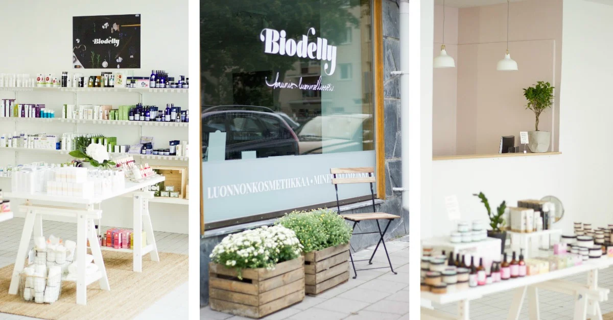 luonnonkosmetiikan aarreaitta, Biodelly, Turun Rauhankatu kympissä.