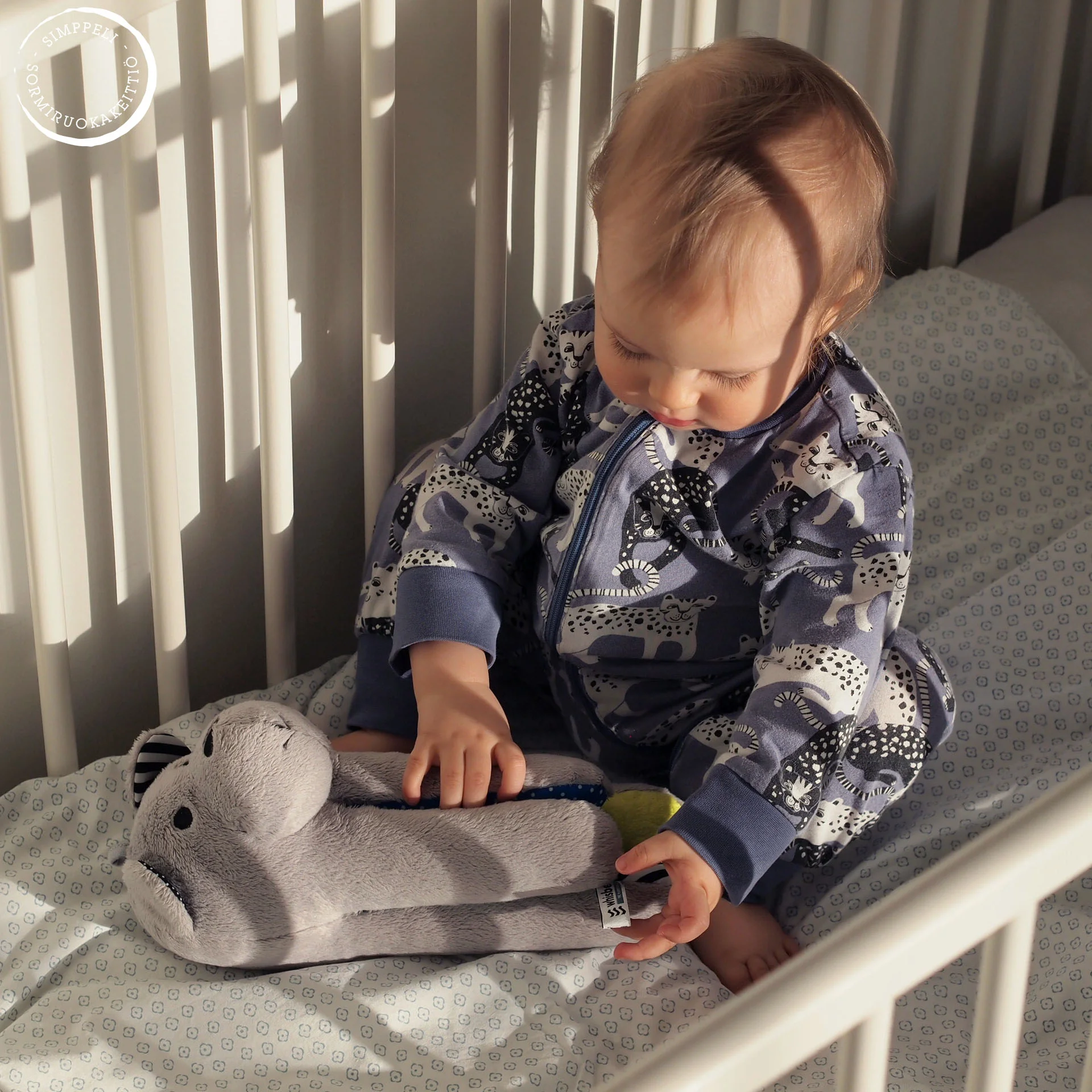 Heräilyiden taustalla oli mitä luultavimmin tapa. Tuntui, että lapsi ajatteli, että jokaiseen havahtumiseen tarvitaan tissiä tai vähintään heijaamista. Tähän haimme, skeptisinä, ratkaisua nallesta. Suurin toiveemme oli, että lapsi oppisi rauhoittumaan öisin myös itsekseen, Suhisija turvanaan.