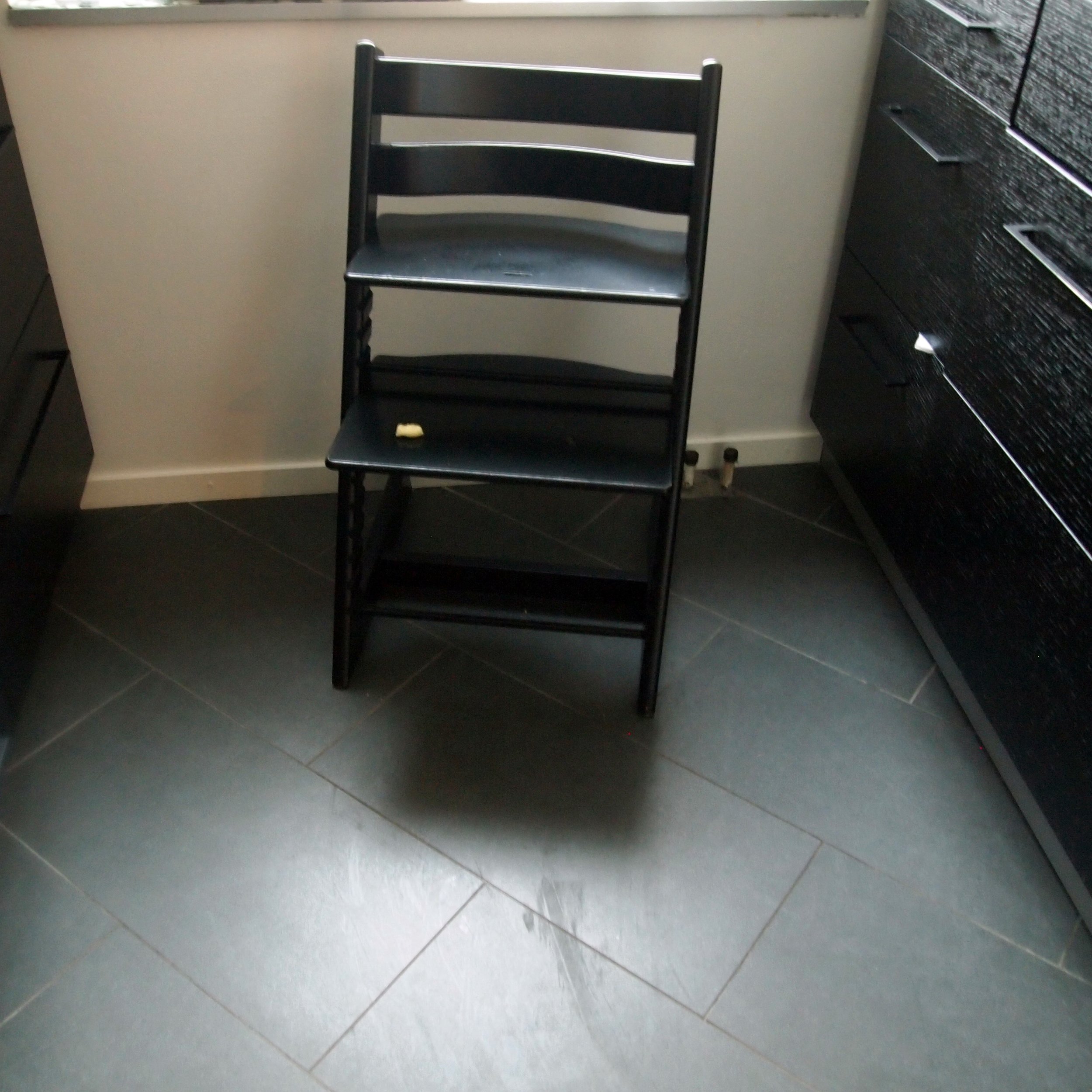 Koska valo ei osu lainkaan ruokapöytämme alle, ja näkyvyys olisi siksi huono, lavastin testialueen keittiöön.