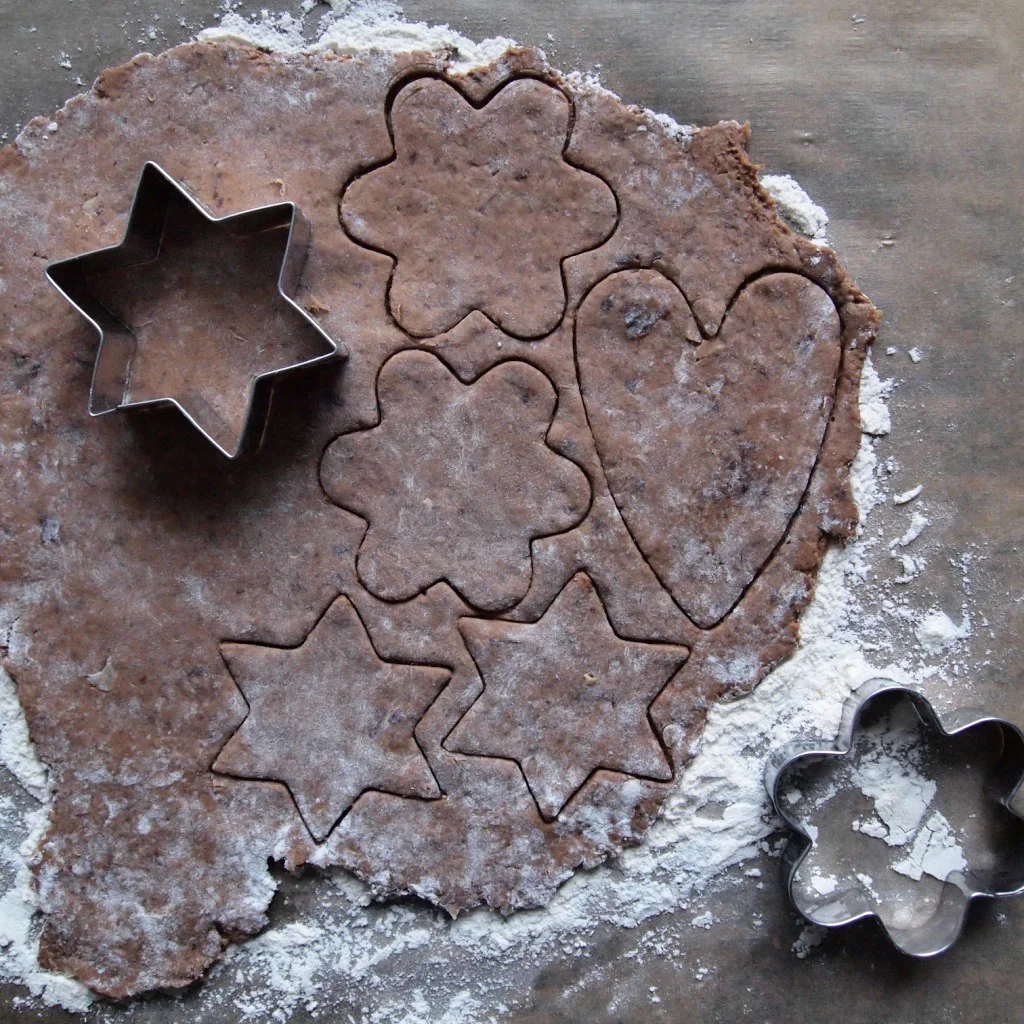 Muista ripotella jauhoja reippaasti alle ja päälle. Muuten ei kauliminen suju ja piparit on mahdotonta saada siirrettyä pellille.