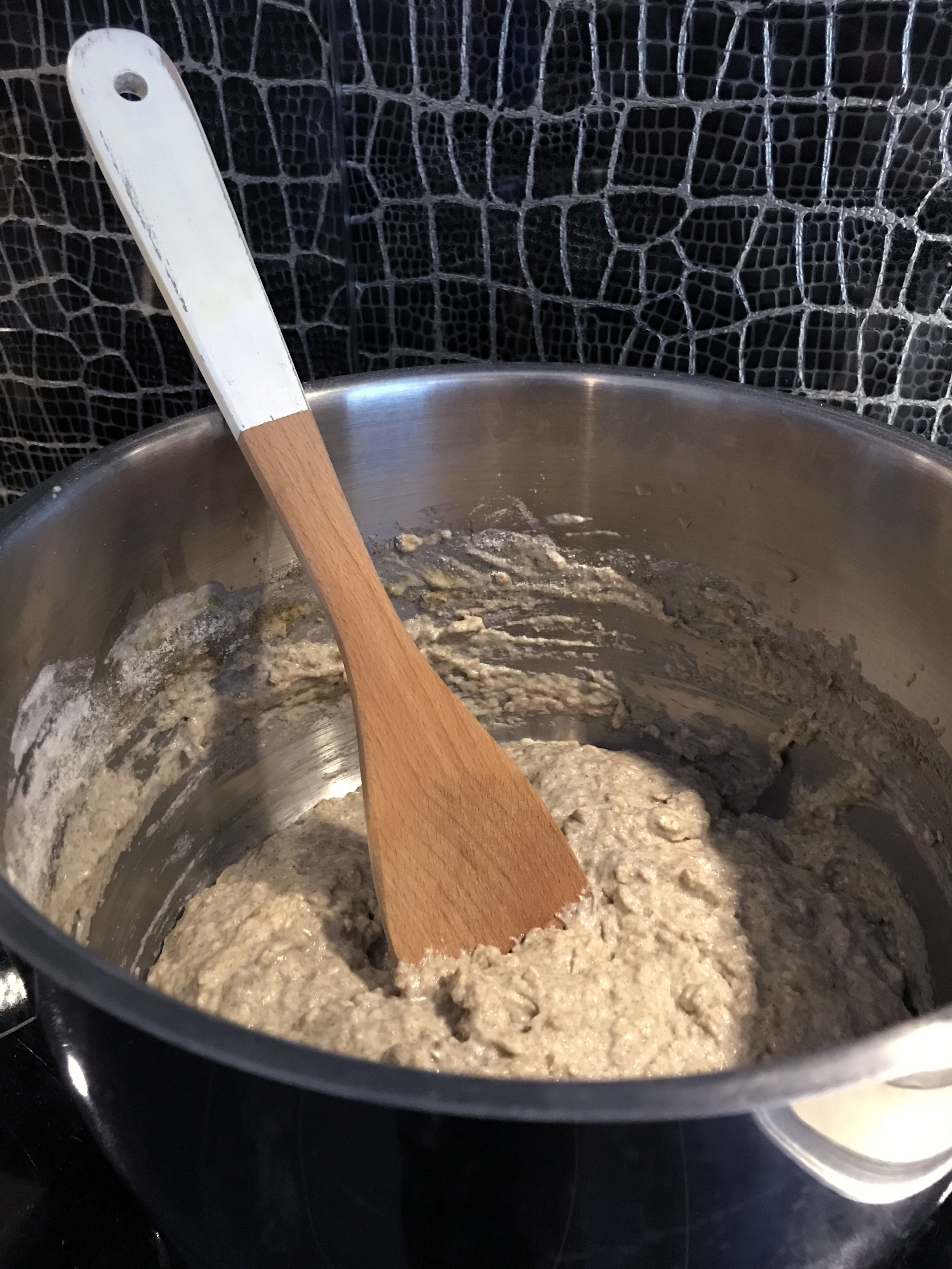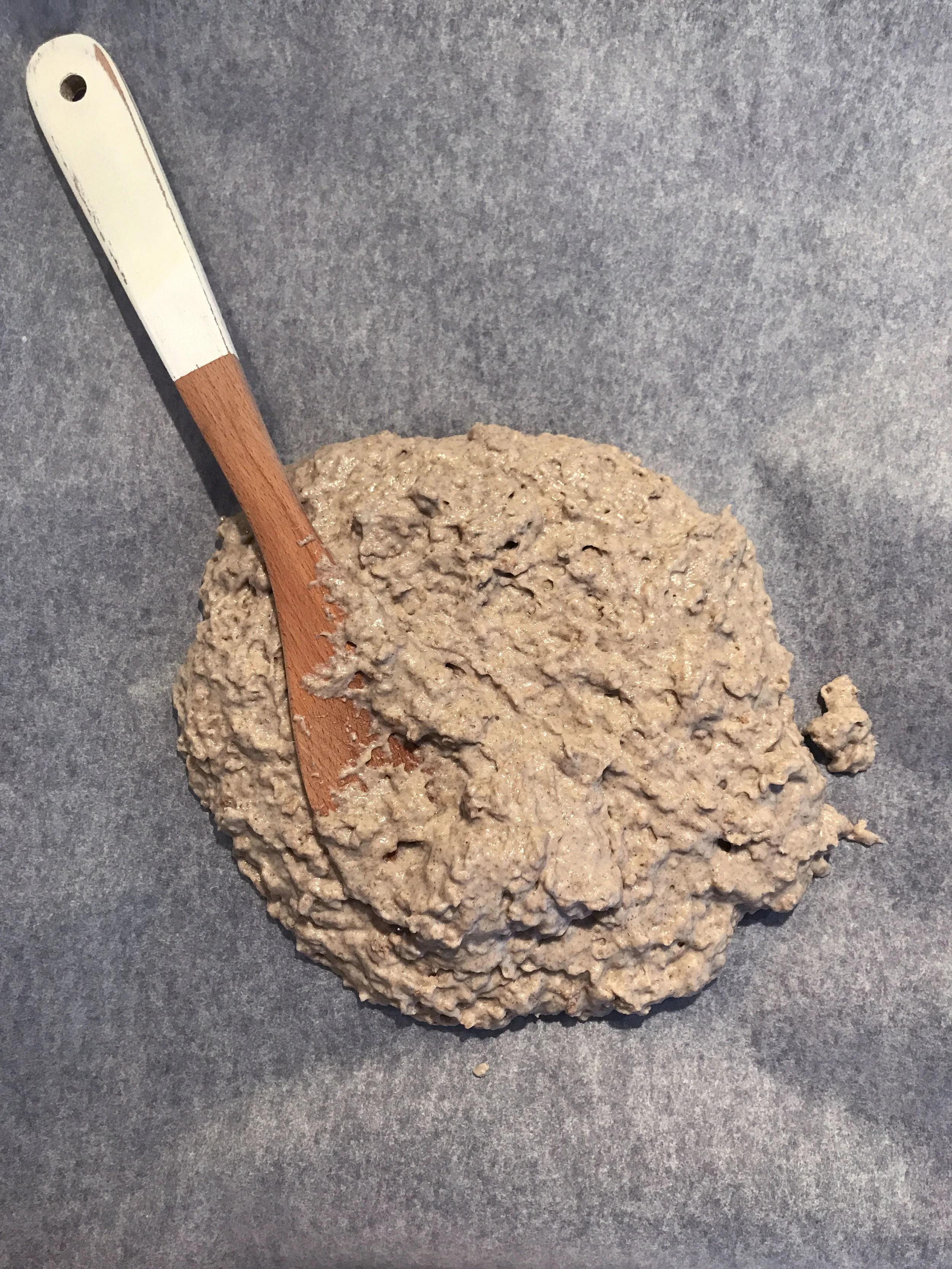 Kohottamisen jälkeen taikina on kuin paksua puuroa.